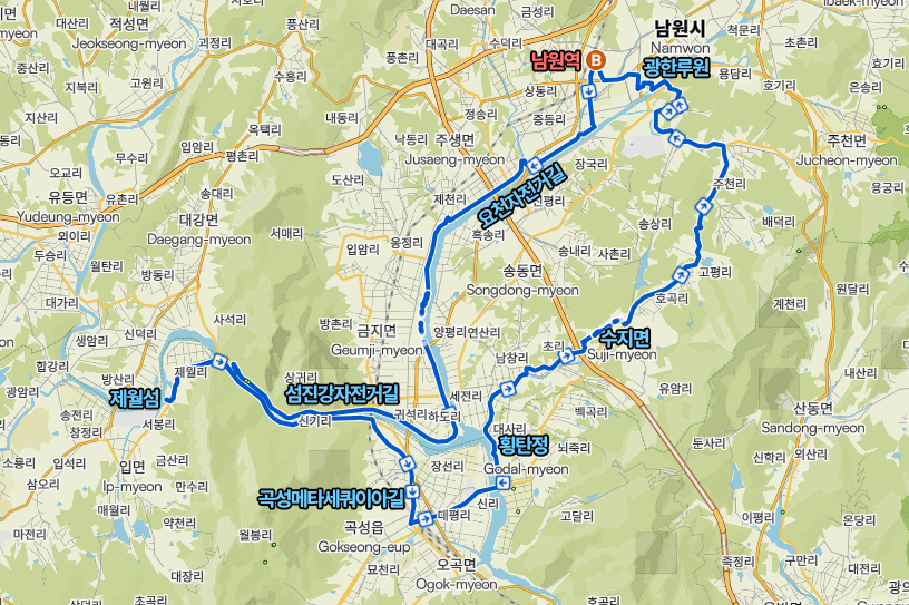 [·ÎµåÁß±ÞÄÚ½º : °Å¸®66km/»ó½Â410m] ³²¿ø¿ª ~ ¿äõÀÚÀü°Å±æ ~ ¼¶Áø°­ ÀÚÀü°Å±æ ~ Á¦¿ù¼¶ ~ °î¼º¸ÞŸ¼¼ÄõÀ̾Ʊæ ~ ȾźÁ¤ ~ ¼öÁö¸é ~ ÇÏÁÖ¸¶À» ~ ±èº´Á¾¹Ì¼ú°ü ~ ÃáÇâÅ׸¶ÆÄÅ© ~ ±¤ÇÑ·ç¿ø ~ ³²¿ø½Ã³»(°³º°ÀÚÀ¯¼®½Ä) ~ ³²¿ø¿ª